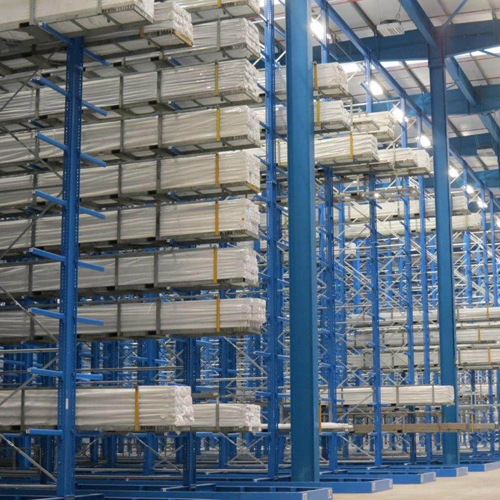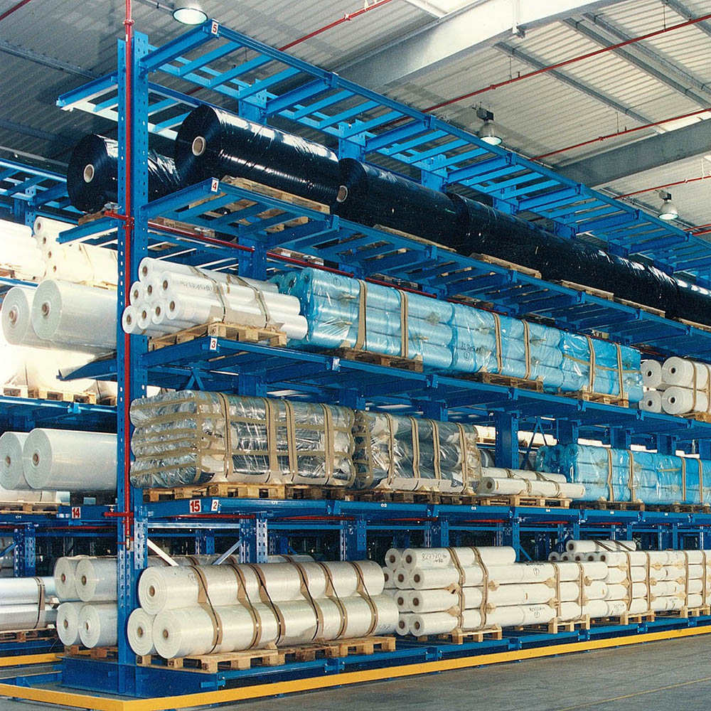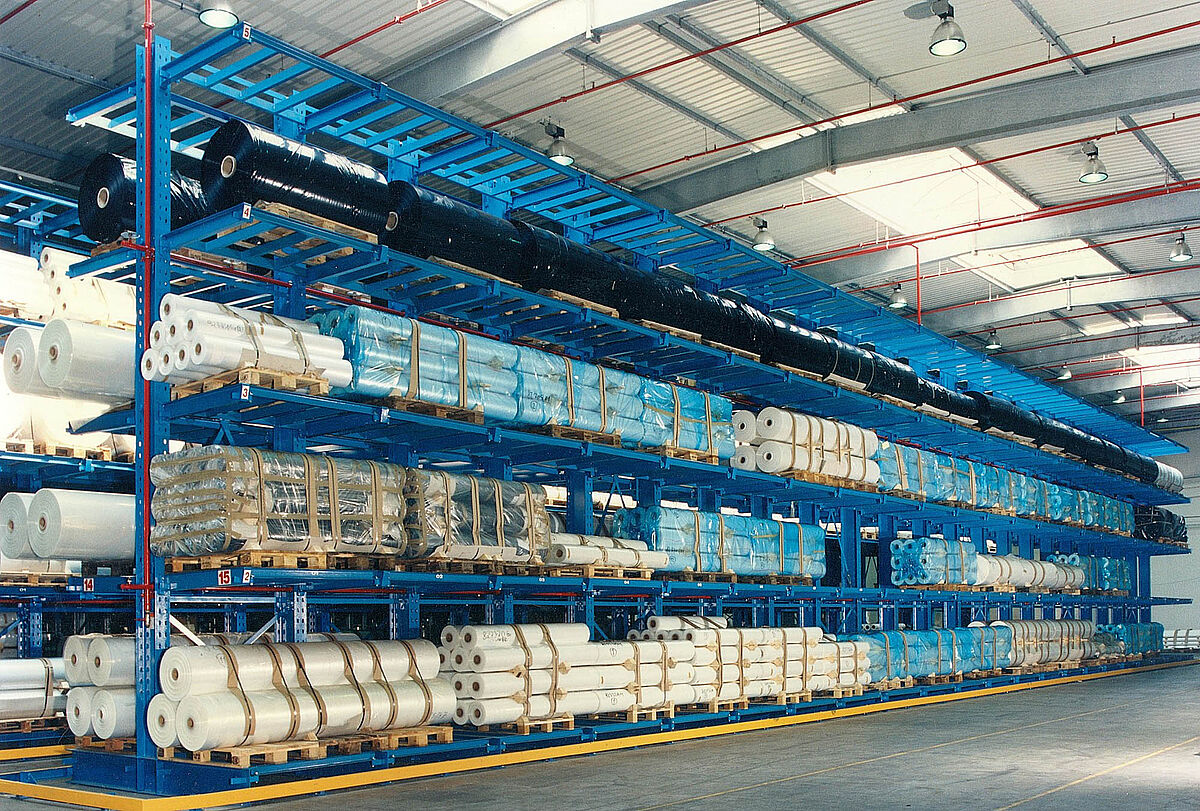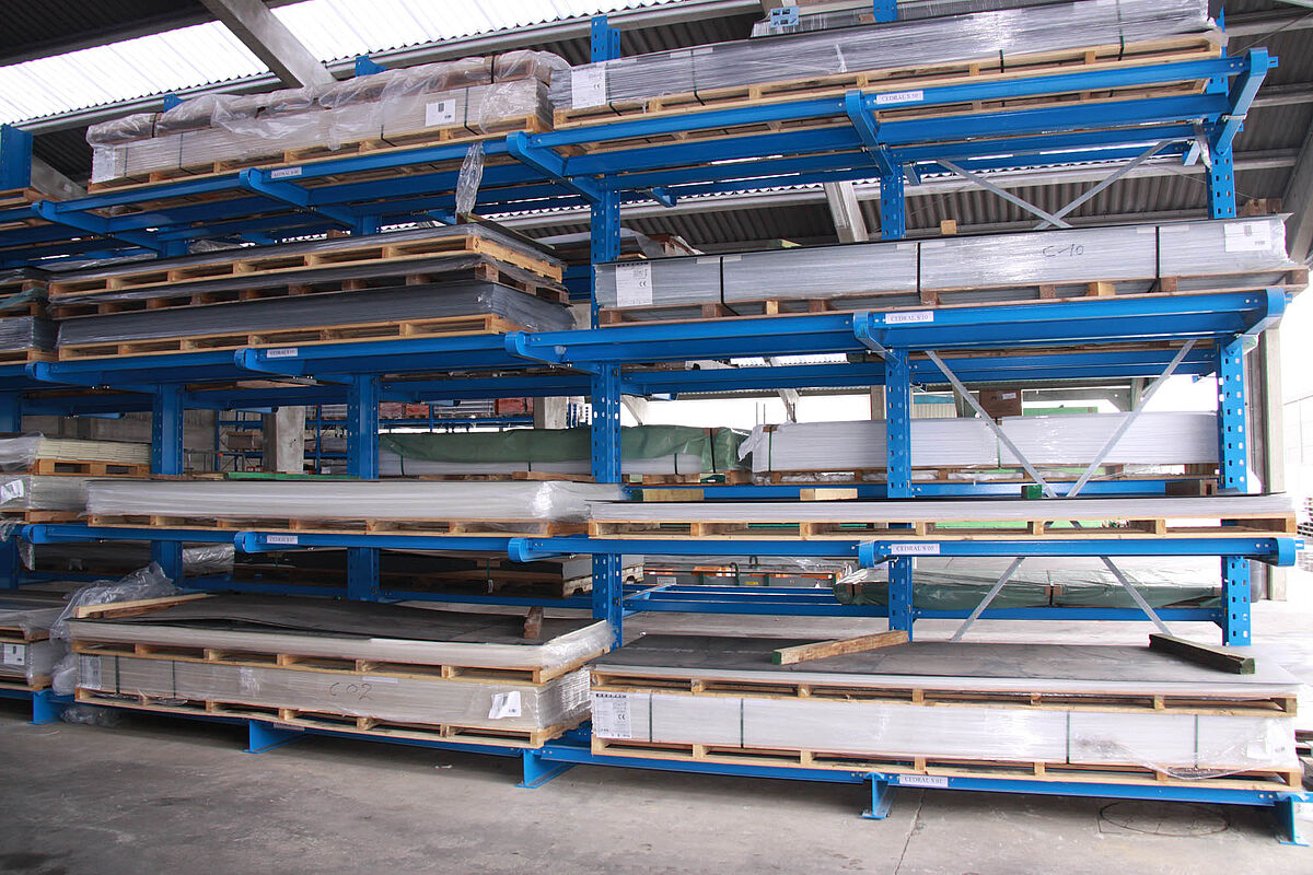 For the storage of aluminum and plastic, cantilever racks are the ideal storage solution for long goods of any shape, length or quality. With this racking system, aluminum and plastic profiles, PVC pipes and panels, downpipes, window frames, guttering and miscellaneous long goods can be stored and removed in a particularly space-saving manner.