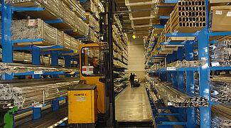 Optimal, efficient usage of the existing ceiling clearance. Storage platforms by OHRA are versatile for use in aluminium and plastic processing plants. Whether as additional storage space or as an assembly workstation, the self-supporting construction can be installed in any existing warehouse and adapted to the individual space layout. It is possible to take full advantage of the existing ceiling height. Combinations of storage platform and integrated racking system can be custom-fitted as desired thanks to the robust construction and modularity of the OHRA racking.