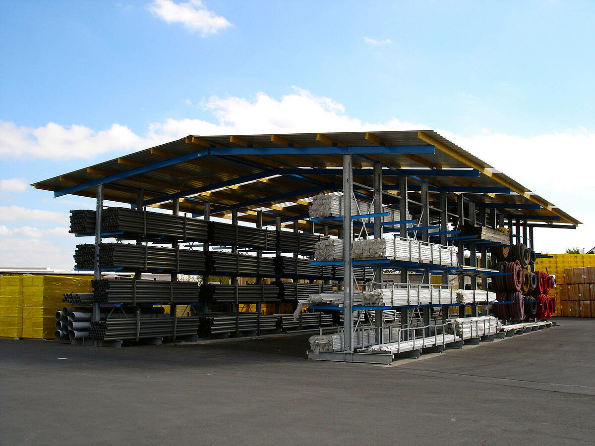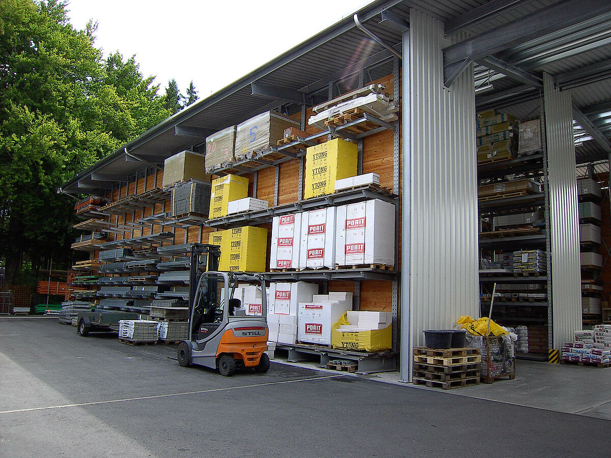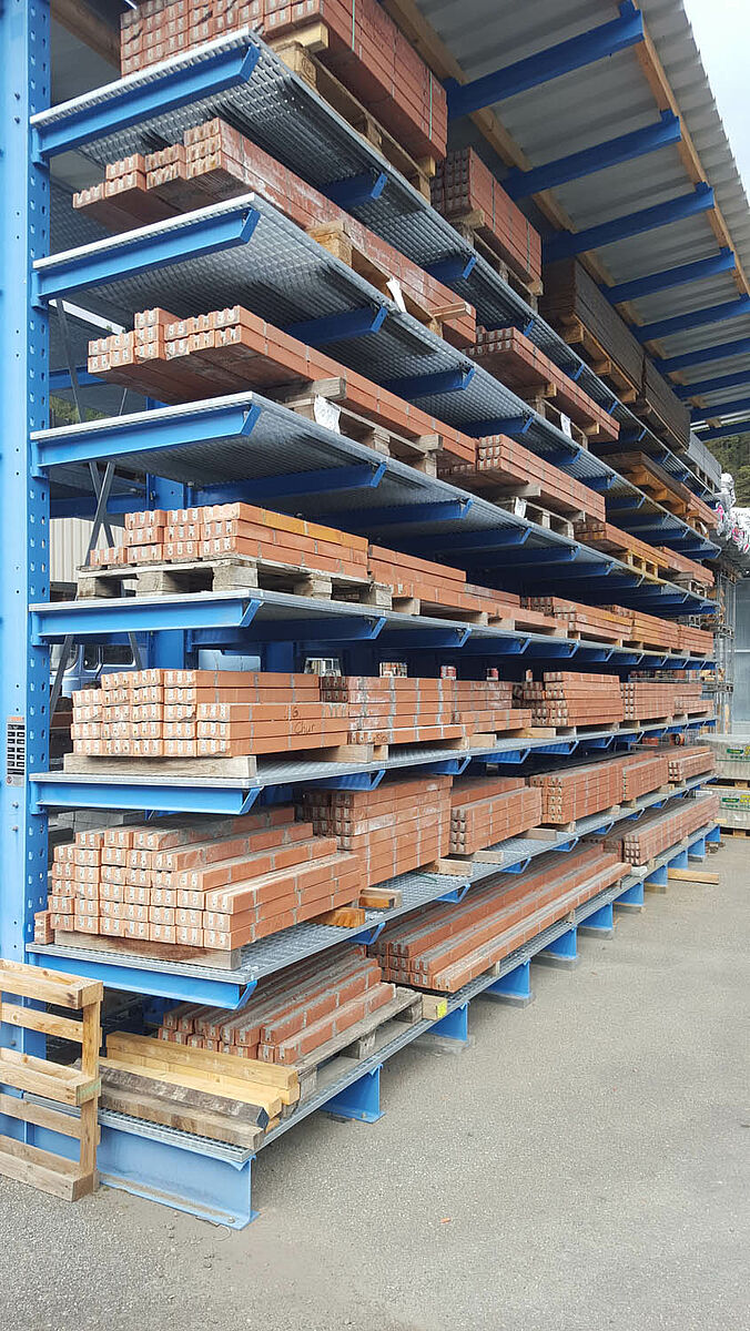 Many types of shelving systems quickly reach capacity. Here, OHRA racking systems prove to be robust, durable and reliable. They meet all conditions necessary for accommodating as much heavy building-material products as possible in less space. The high quality of the pallet and cantilever racking, made from hot-rolled steel profiles, ensures a durable and economical storage solution for your building materials storage.