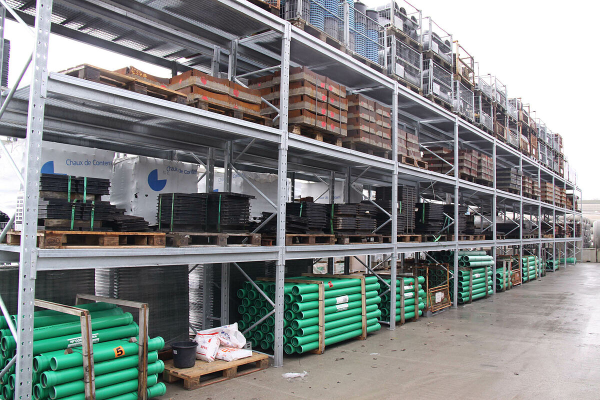 The OHRA P3 pallet racking has been developed especially for the construction industry, in order to store heavy loads such as bricks, concrete parts or cement bags safely. When storing a large variety of palletised products, pallet racking is widely accepted as the most universal storage systems. In the construction material sector the storage of heavy and bulky goods is a challenge. Most conventional pallet racks are at full capacity and max out their loading capacities. OHRA Pallet Racks are long lasting and stable! The use of hot-rolled steel profiles for the supporting components of OHRA’s pallet racking allows for the safe storage of your goods. The high-quality of the frames and beams ensures a durable and thus economical solution for your building material warehouse. The use of hot-rolled steel profiles allows for high load capacities even with large storage levels.