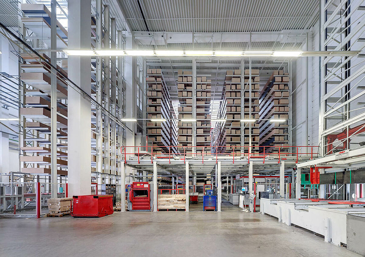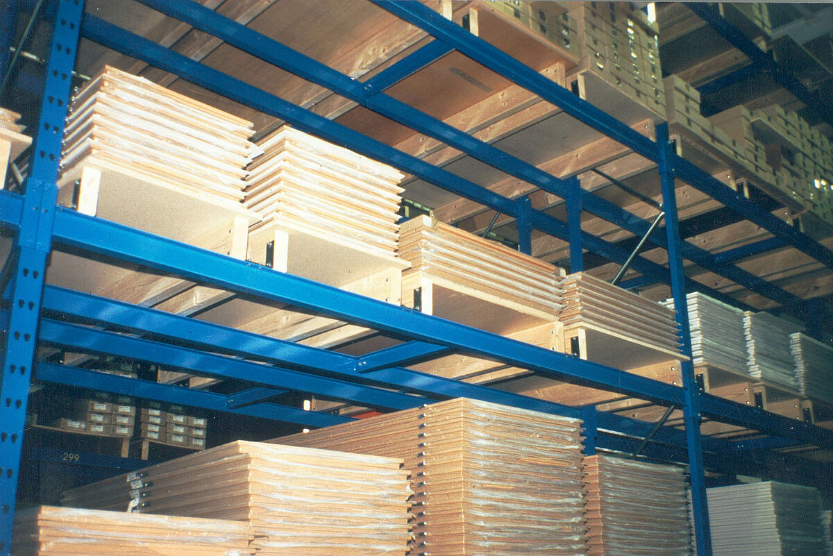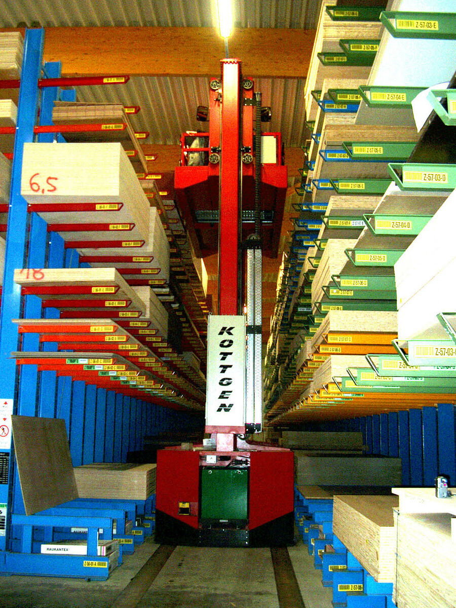 Especially in the furniture and timber industry the perfect storage of the heavy and unwieldy panels is an important fact. In the receiving store, material such as MDF panels or chipboards for production are stored with different sizes and with direct access.