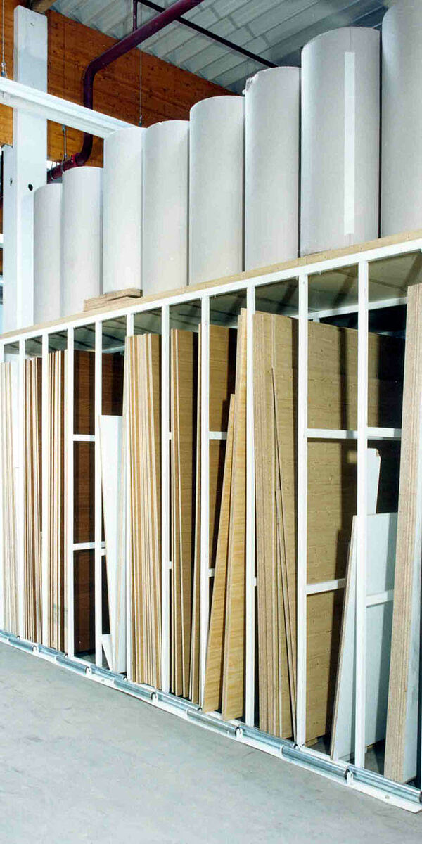 For many goods, such as moulding, profiles, bars or tubes, vertical racking systems are the perfect and customer-friendly type of storage. Different items and sizes can be sorted and presented to be readily accessible in the warehouse or sales room. For upright storage of chipboard panels directly into the cutting area, there is no better alternative than OHRA´s robust chipboard rack. The connector system, which consists of square tubes, is fully developed and durable. For easy entry and exist of the products, high-quality roller conveyors are mounted in front of each rack stack.