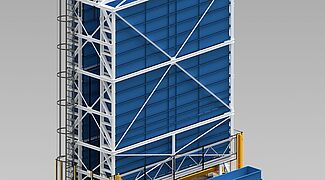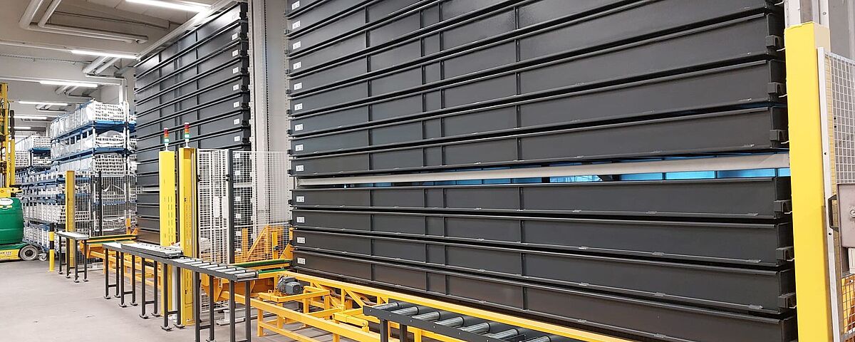 2. TowerMat TM-FE is designed for medium storage capacities and, thanks to multiple storage towers and a central stacker crane, enables particularly high efficiency.