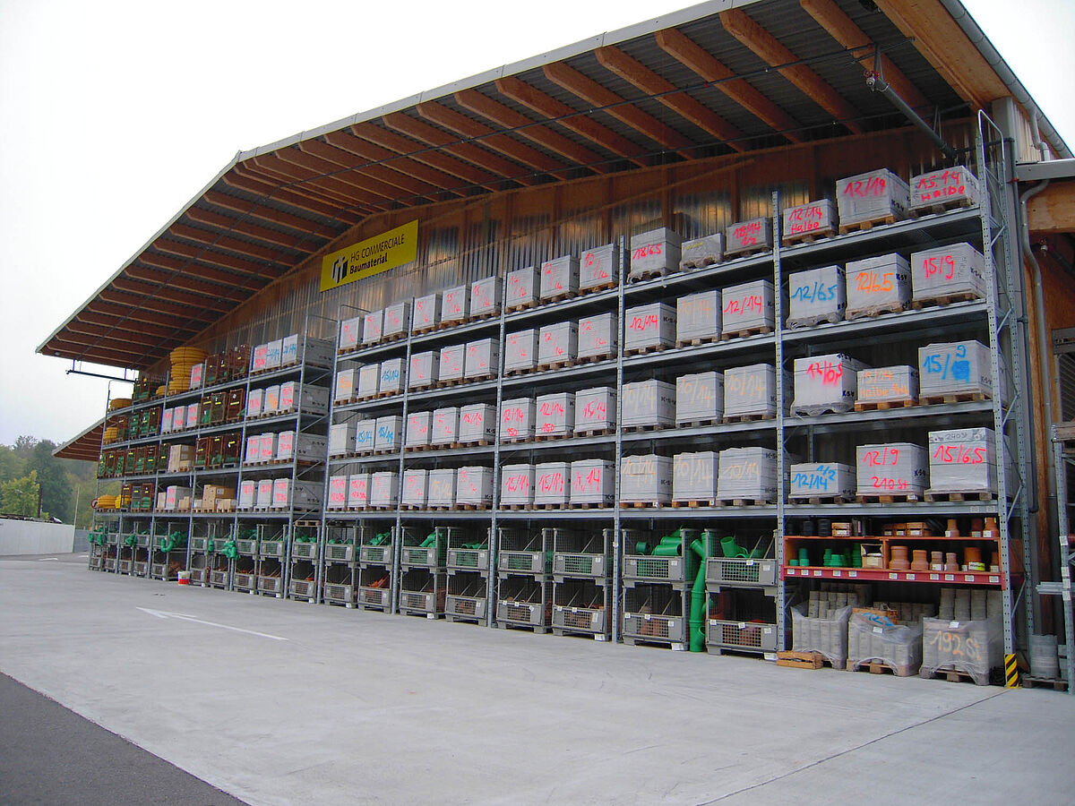 Roofed pallet racks are a special product by OHRA. There is no better alternative for weather-resistant goods that can be stored in outdoor racks. The roofed OHRA racks are particularly suitable for businesses with a garden centre product range or for building materials trade where finished concrete parts, bagged goods on pallets or timber elements are stored in outdoor areas.