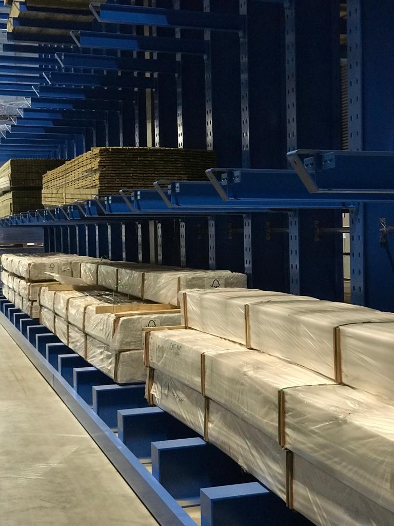 Not only has 4PLUS chosen the quality and carrying capacity of hot-rolled racks, they have also chosen the flexibility of OHRA. True to this trait, the European leader in cantilever racking has integrated the 80 “old” cantilever arms already in 4PLUS’ possession into the new system. The racking was also fitted with a total of 31 galvanised grates: This allows material in pallets to be stored in the cantilever racks as well. The racking system is served by a multi directional side loader while a guide rail system on the bases facilitates manoeuvring in the aisle.