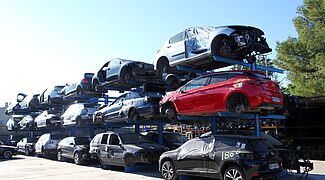 The Spanish automobile recycler Desguace Alarcón has expanded its storage capacity for end-of-life vehicles with OHRA cantilever racks, with 40 external racks, on each of which six cars weighing up to 1,600 kilograms can be stored, providing extra space for further growth of the company. The flexibility of the clipped in, height-adjustable arms: was particularly convincing: As not only can the arm height be adjusted as needed, in addition they move if impacted, thus avoiding damage to the racking and the stored vehicles.