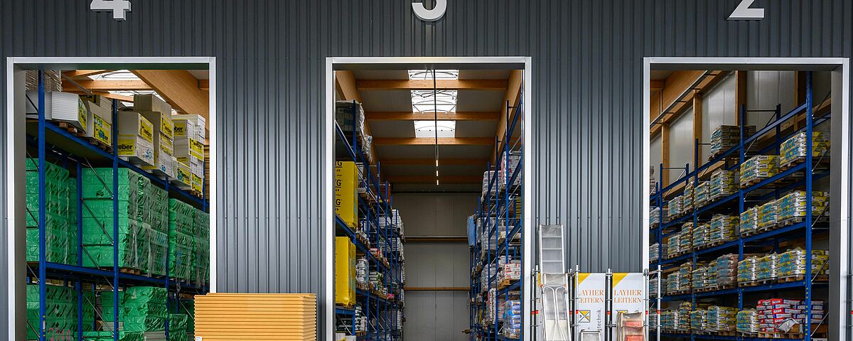 The aim of the renovation and new building of the Radolfzell branch was to create more space for a greater number of items, as well as to improve the quality and speed of throughput times. Previously, the inefficient use of storage capacity at the 6,000 square metre site had led to delays in storage and retrieval, and therefore in customer collection. In addition to a large outdoor storage area and a 1,500 square metre warehouse, the new 1,000 square metre drive-in area is the central hub of the modernised branch.