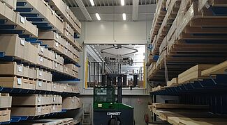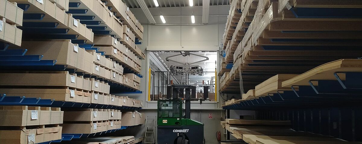 The new company building is the logical continuation of Gerbrich's development from a small joinery founded in 1897 to a production plant equipped with state-of-the-art technology. Highly efficient production requires a reliable supply of the materials needed - chipboard and laminate panels, door trim and other components necessary for the manufacture of the doors.