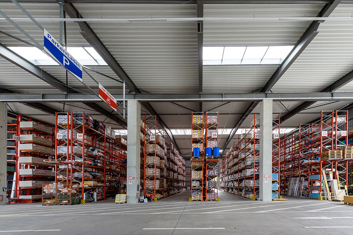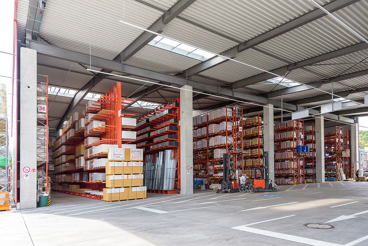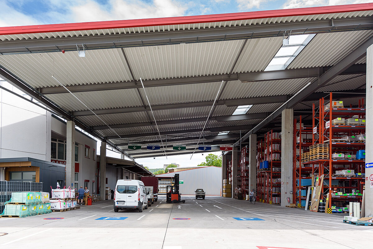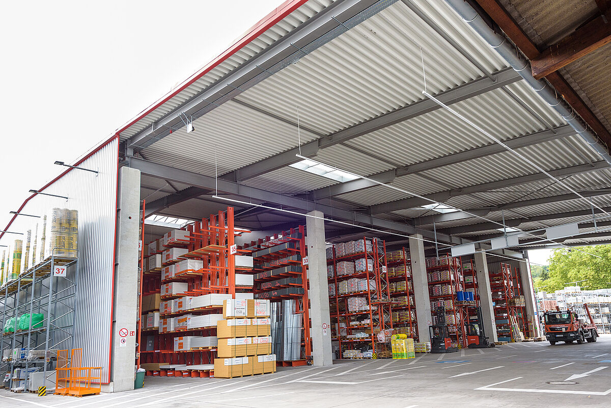 The new racking installations allow Götz + Moriz to offer their customers at the Lörrach site a significantly broader and deeper stock assortment, and to stagger delivery and collection better thanks to the surface areas liberated. Covered loading and unloading areas and shorter waiting times are additional advantages for customers.