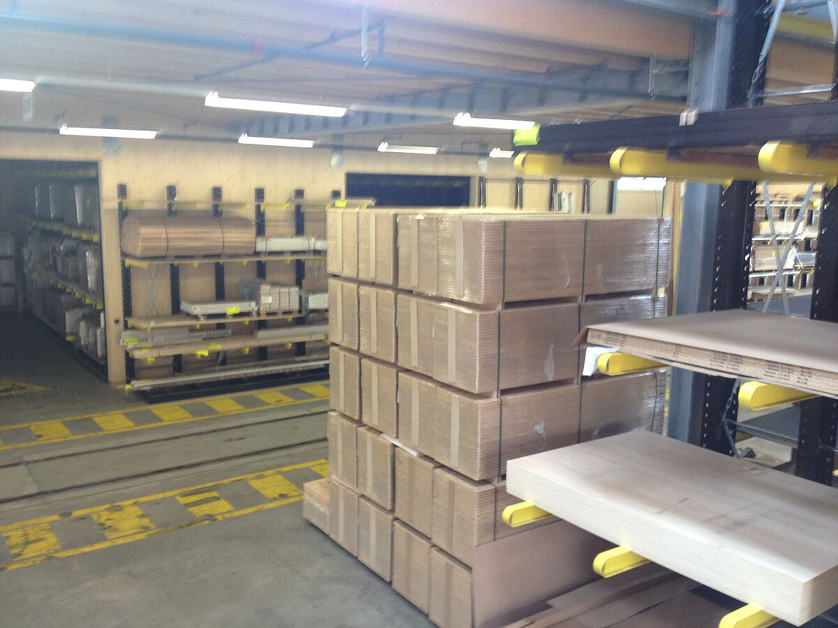 The warehouse in Biel is divided into two drive-through zones covering an area of around 3,000 square meters. In the warehouse OHRA assembled around 600 meters of cantilever racks to a height of 9 meters, composed of seven storage levels employing cantilever arms, generally with a depth of 2.5 meters, serviced by 4-way forklifts. In addition, vertical racks at the ends of the rows of racks facilitate the systematic storage of battens, profiles, and tubing. Hot-dip galvanised pallet and cantilever racks in the outside area provide space for a further 600 pallets. A 1,000 square meter platform has been integrated into the warehouse construction for the storage of insulation material.