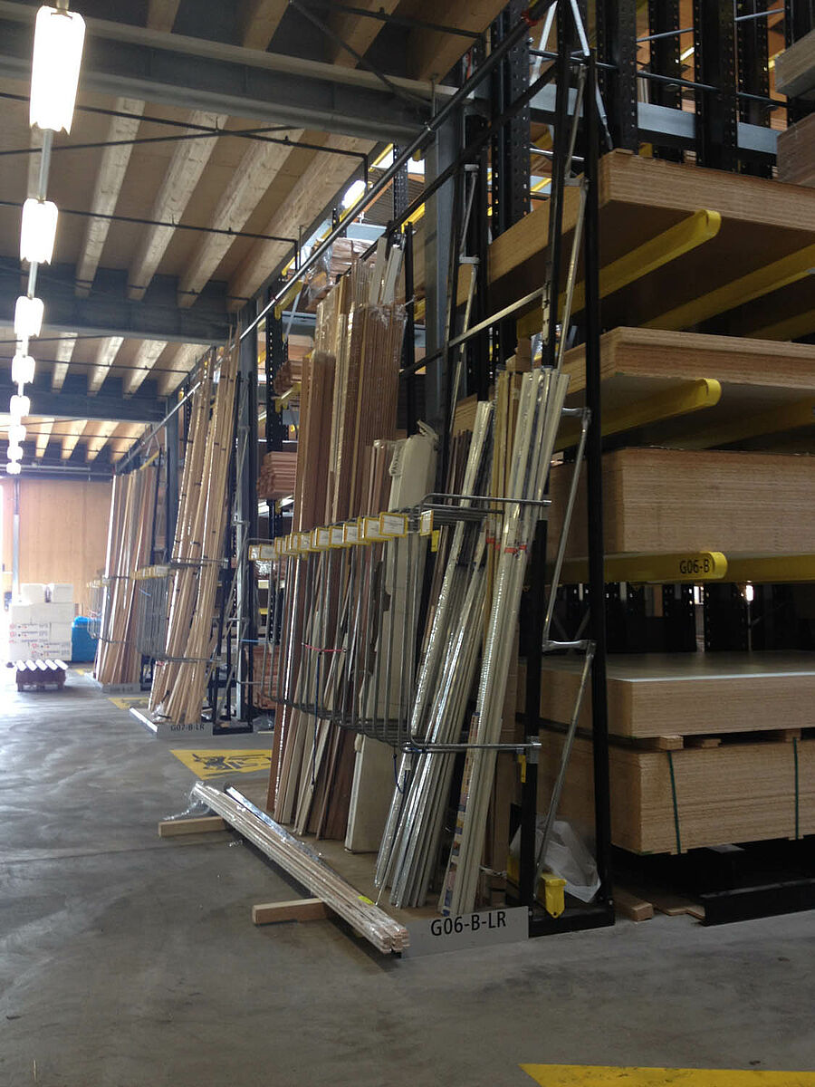 HG COMMERCIALE (HGC), one of the Swiss building industry’s leading trading companies, has expanded its sales outlet in Biel with rack systems from OHRA. A tailor-made combination of cantilever, pallet, and vertical racks provides more space for a broad product range of building materials. The roofed warehouse has been designed as a drive-through warehouse - customers drive through the warehouse in one direction, obtaining their goods directly from the various racks.