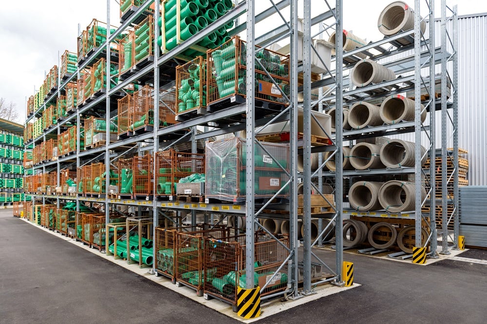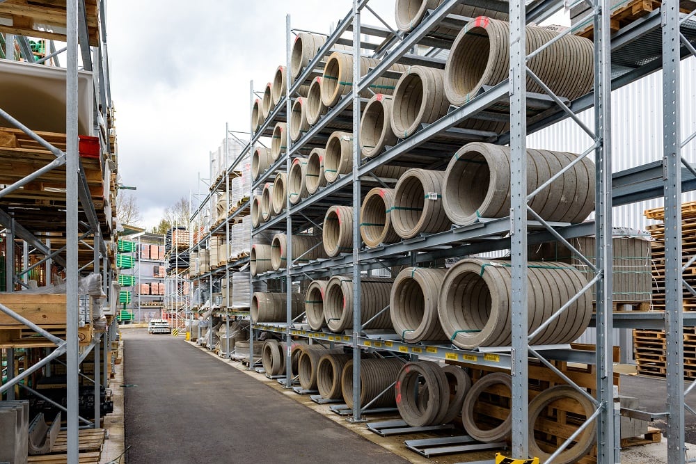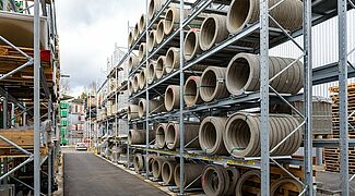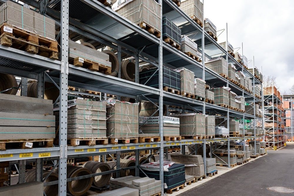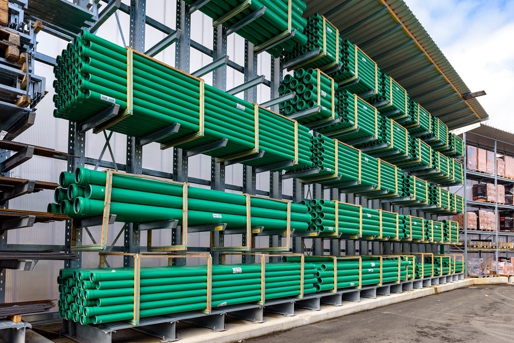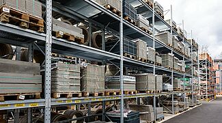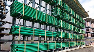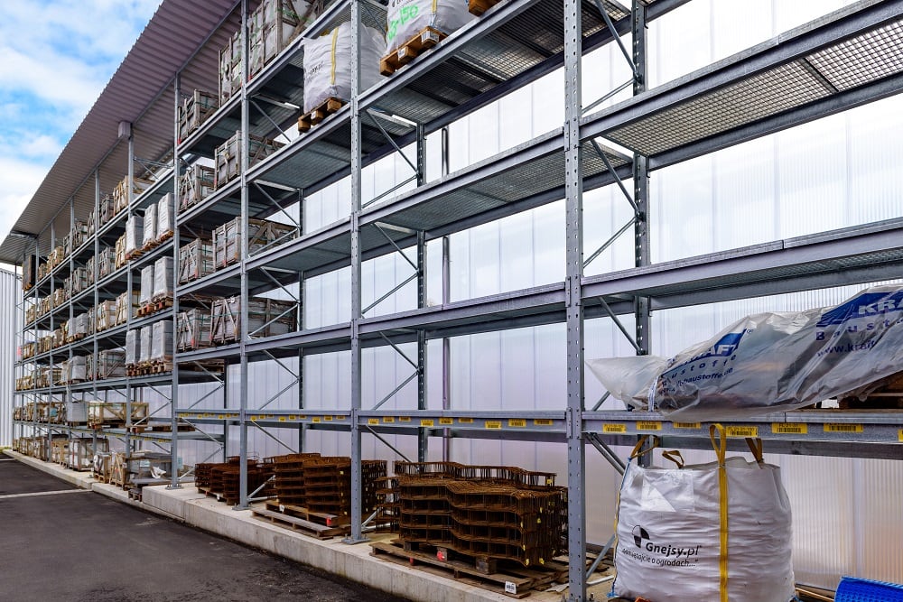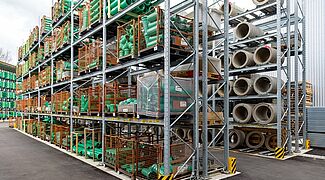 Once again, Kraft equipped the new outdoor warehouse with pallet and cantilever racks from OHRA, for the storage of this multitude of different materials. Ohra racks have already proven their quality at other branches operated by the building materials dealer. This is because OHRA only uses solid steel profiles for the load-bearing elements of its racks. This forms the basis of their high load-bearing capacity and the slim design of the racks. The pallet racks offer custom loads of up to 4,500 kg, the uprights of the cantilever racks carry up to 5,000 kg, and each individual arm up to 1,000 kg.