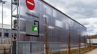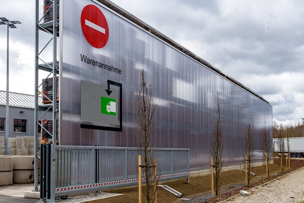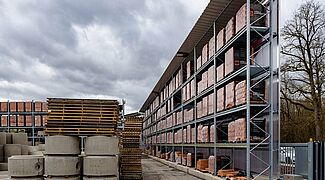 Kraft Baustoffe, currently the largest building materials dealer in the Munich area, has opened an open-air warehouse for its new Höhenkirchen-Siegertsbrunn branch with pallet and cantilever racks from OHRA. The racks are not only equipped with roofs, but - since strict noise protection requirements had to be implemented - they also have rear wall cladding that serves as a soundproofing element.