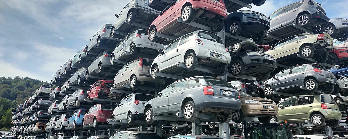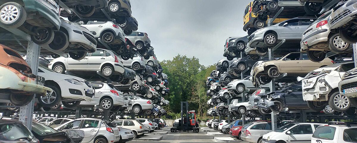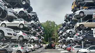 The French car recycler Rubio Caréco has increased its storage capacities for end-of-life vehicles fivefold on the existing area with a new racking system from OHRA. Previously, the 4,000 m² outdoor floor storage area provided space for around 216 end-of-life vehicles. Today, five cars are stacked on top of each other in six rows of 18 double-sided cantilever racks. This results in a storage capacity of 1080 vehicles - on the same area. The direct access to each individual vehicle that is now possible saves a lot of handling, which reduces logistics costs and increases safety for the employees.