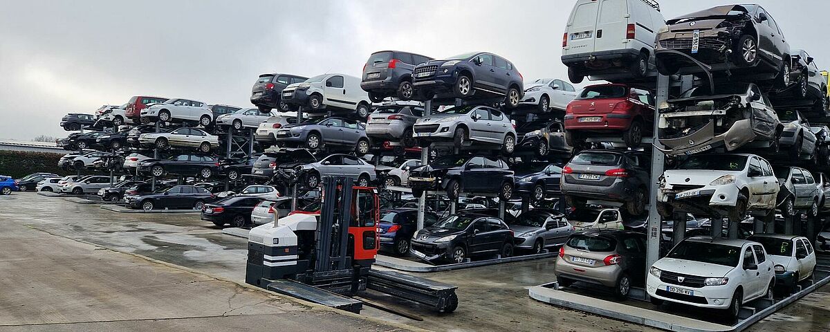 The French car recycler Auto Pièces no longer stores its end-of-life vehicles on the floor, but in OHRA cantilever racks. This makes it possible to store four vehicles on top of each other – while also providing direct access to the cars at the bottom. While Auto Pièces previously had over 350 parking spaces for end-of-life vehicles, 750 vehicles can now be stored in the same area, bringing the site's total capacity to 1700 spaces.